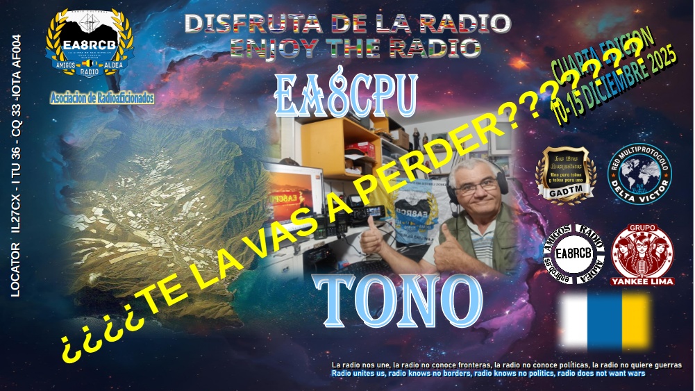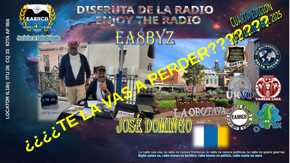 Desde Amigos Radio Aldea (EA8RCB) queremos expresar nuestro más sincero agradecimiento a todos los radioaficionados que han participado en la cuarta edición de “Disfruta de la Radio”.
